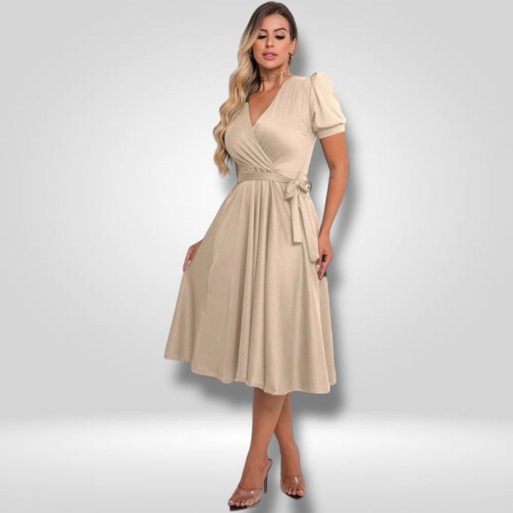 VESTIDO EM MALHA CANELADA DE POLIESTER